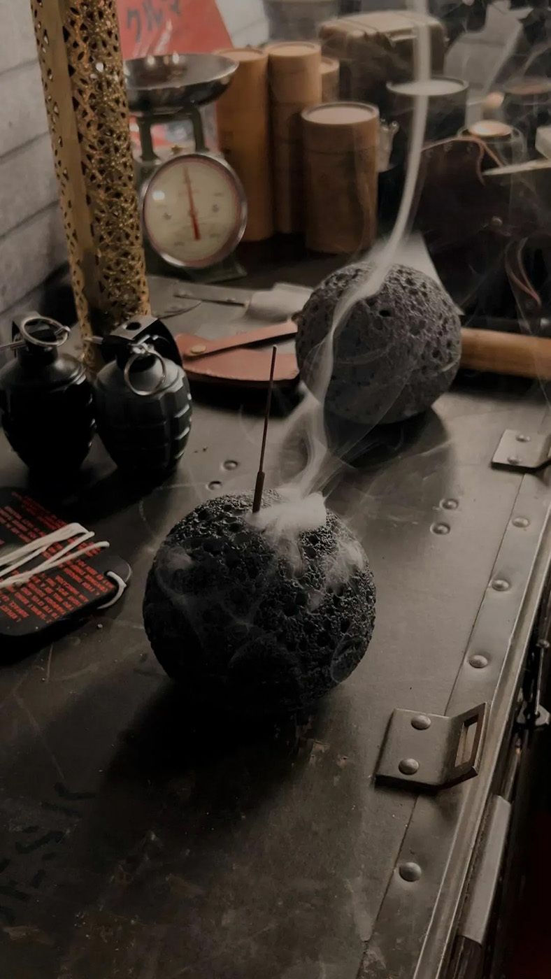 .將線香倒插進座中,煙霧會從石頭孔中冒出營造獨特氣氛