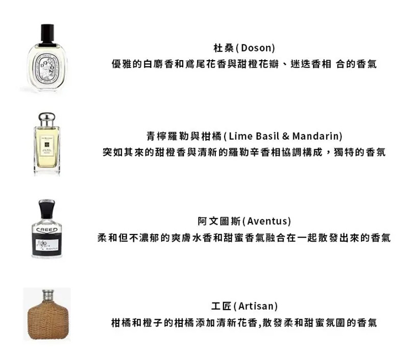 .Artisan:柑橘和橙子的柑橘添加清新花香,散發柔和甜蜜氛圍的香氣