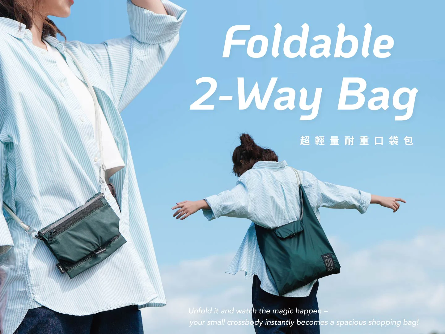專為購物與旅行需求開發:結合外出小包 x 購物袋 x 肩背袋的輕便包袋。