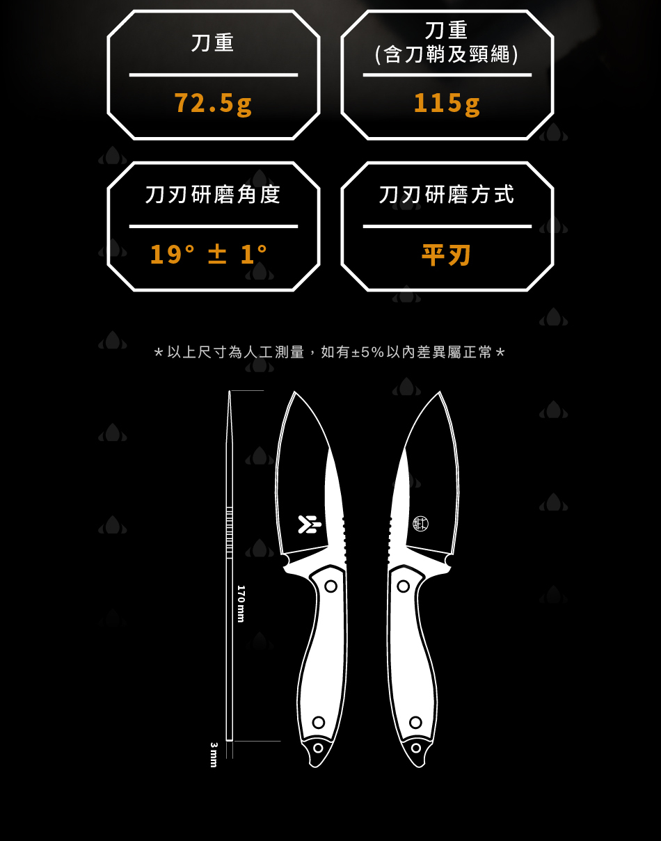 ・重量:115g (包含刀鞘與頸繩)