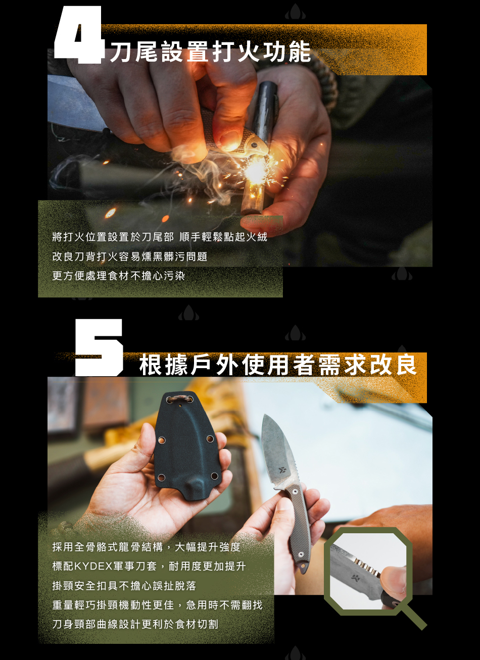 ▸達人改良|刀尾打火設計,保持刀背乾淨更順手