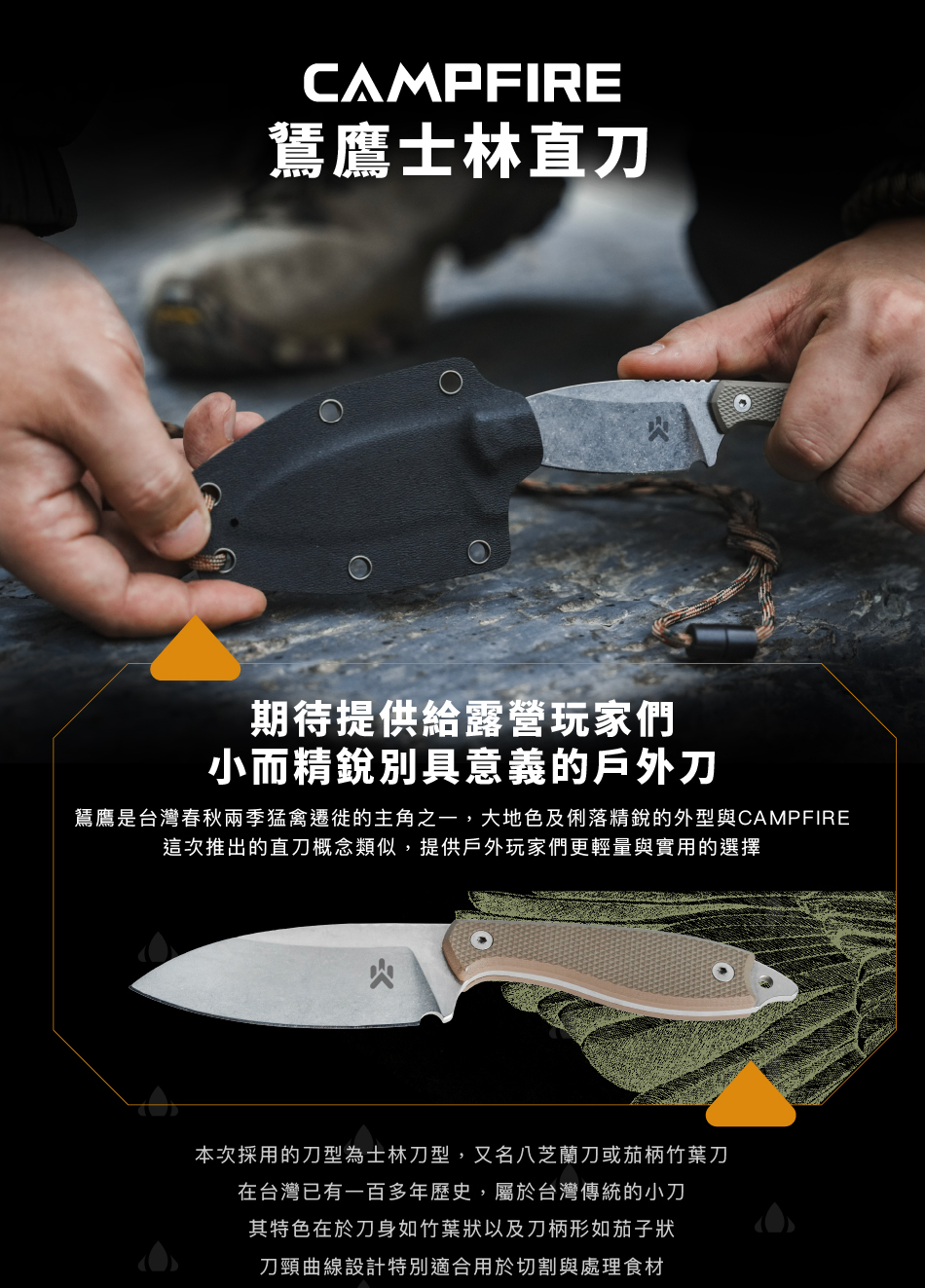 ・用途:切割食材、處理細木、切削柴花、打火石刮