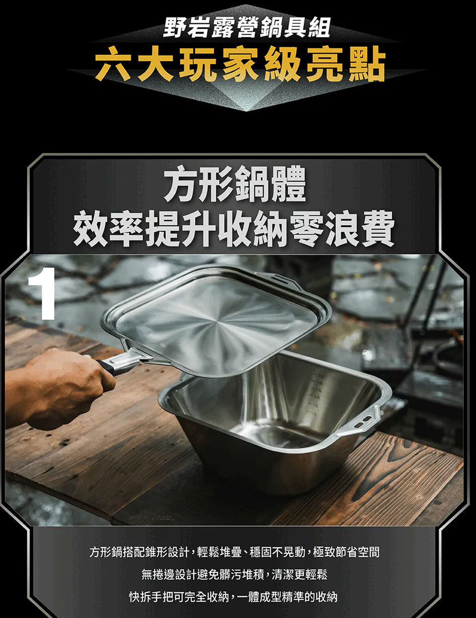 方形鍋體設計將容積最大化!還能堆疊收納,最佳的戶外料理戰友😎