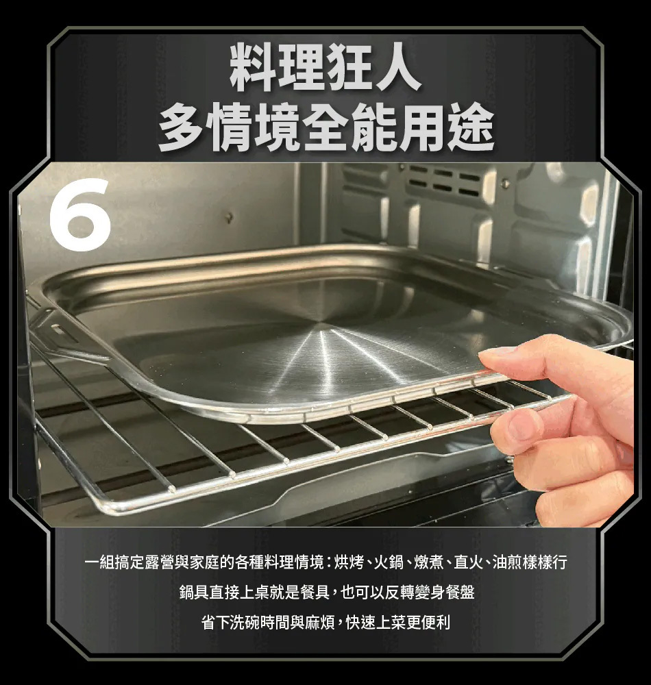 ▸ 方形鍋形|烹調食材擺放不受限,空間利用大幅提升