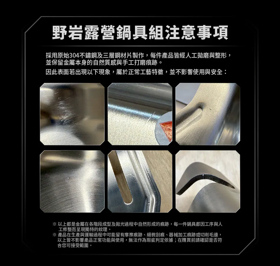 ※產品在生產與運輸過程中可能留有摩擦痕跡、細微刮痕、器械加工痕跡或切削毛邊,以上皆不影響產品正常功能與使用。