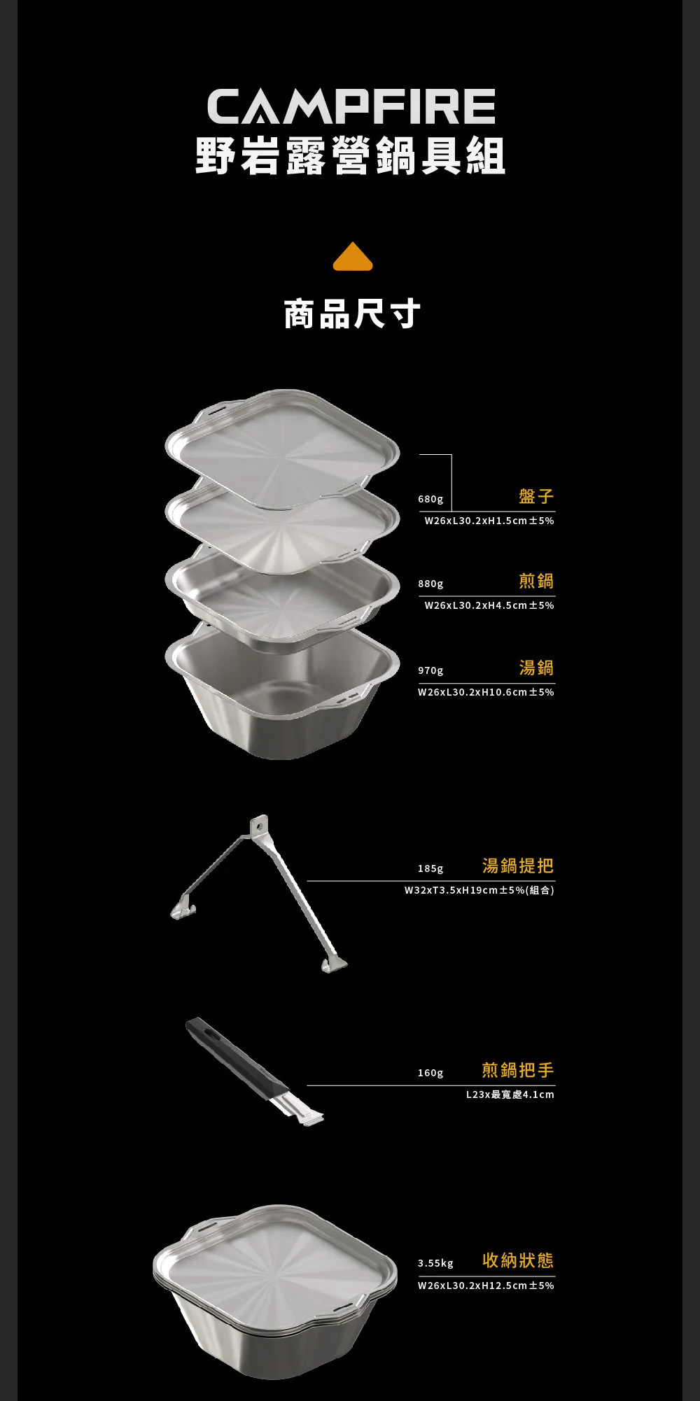品名 : CAMPFIRE 野岩露營鍋具組