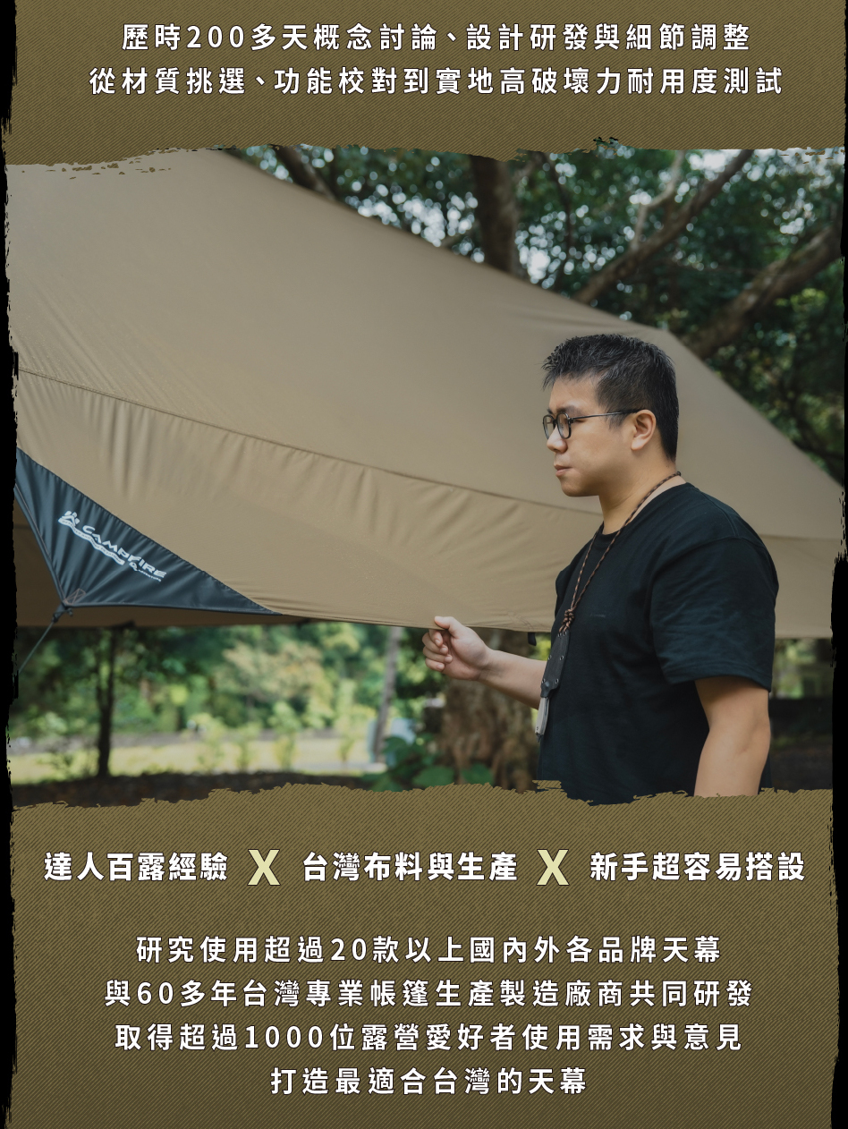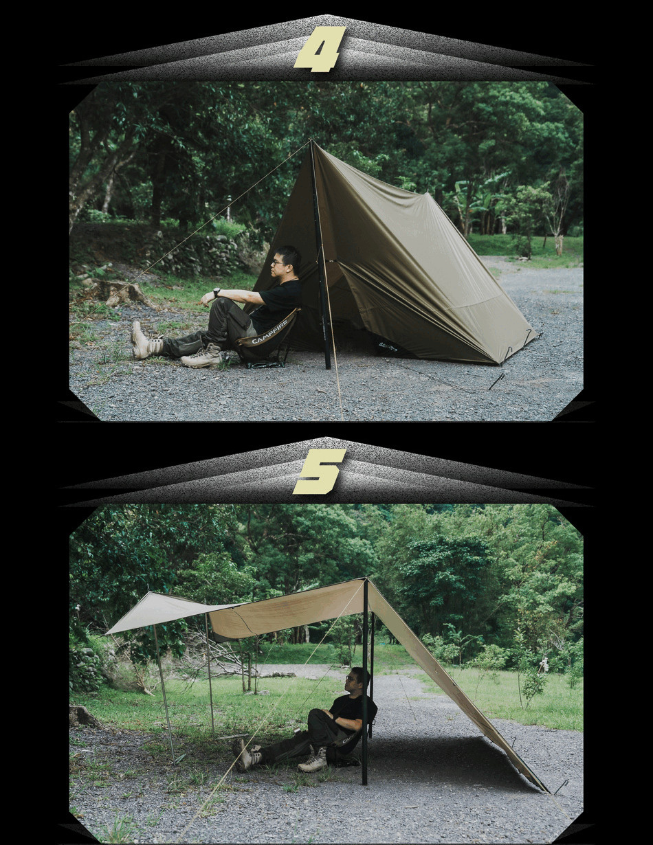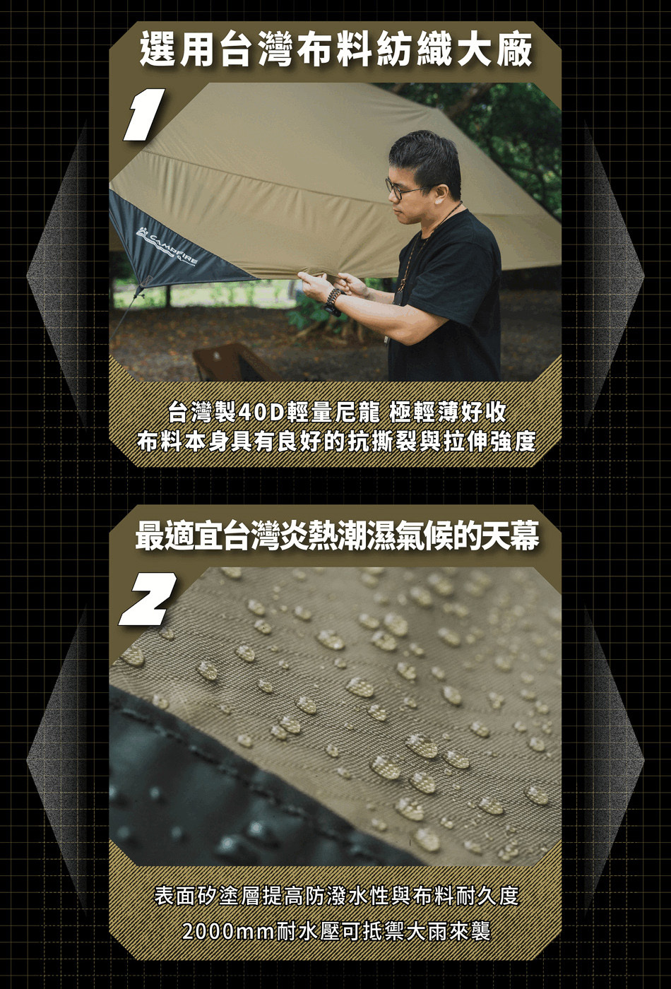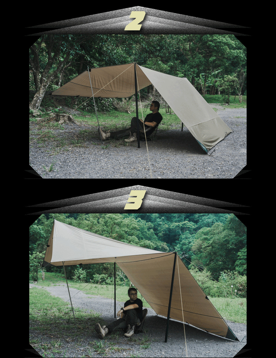 ▸ 經典方型|容易上手且兩根營柱即可搭設