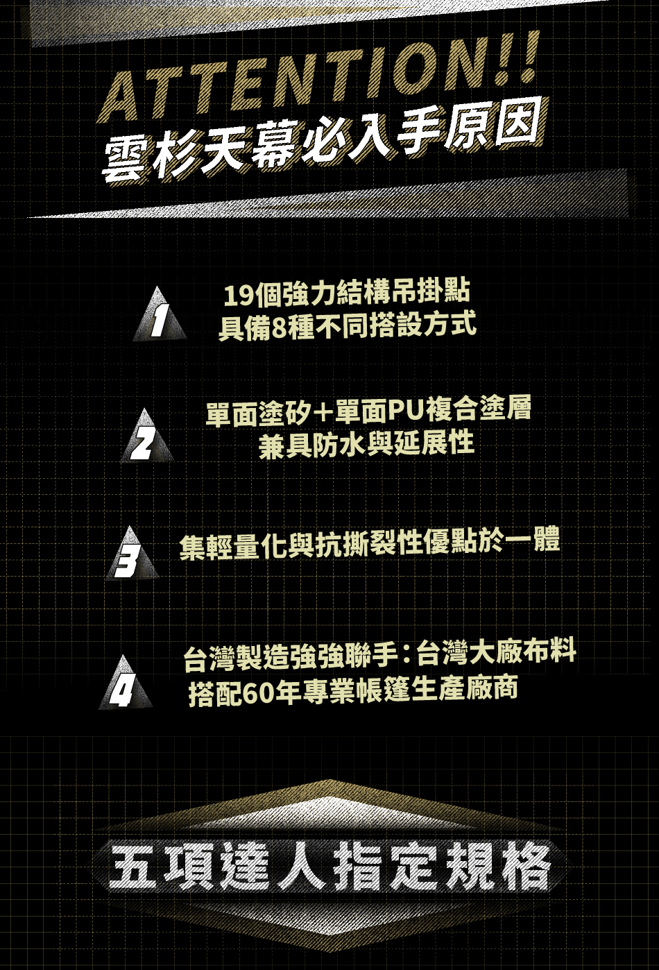 ▸ 高自由度|共19個吊掛點可多變化搭設