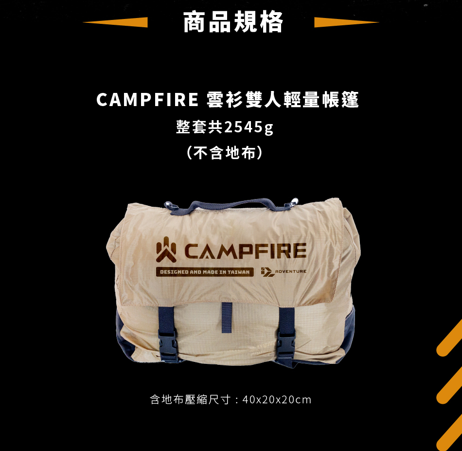 收納體積較小|輕量雙人帳篷,收納壓縮帶減少收納體積