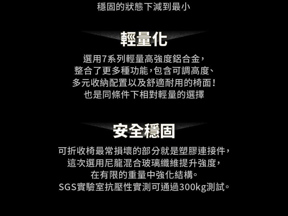 ▸ 嚴選材質|航太等級7系列鋁合金椅骨架