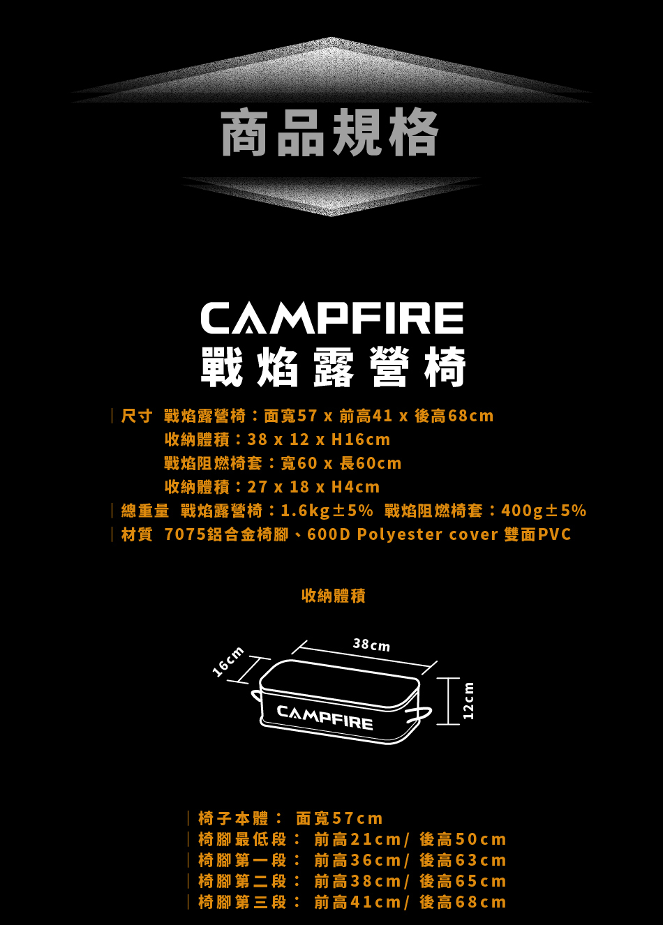 ・內容物:戰焰露營椅腳架*1套、戰焰露營椅面*1、