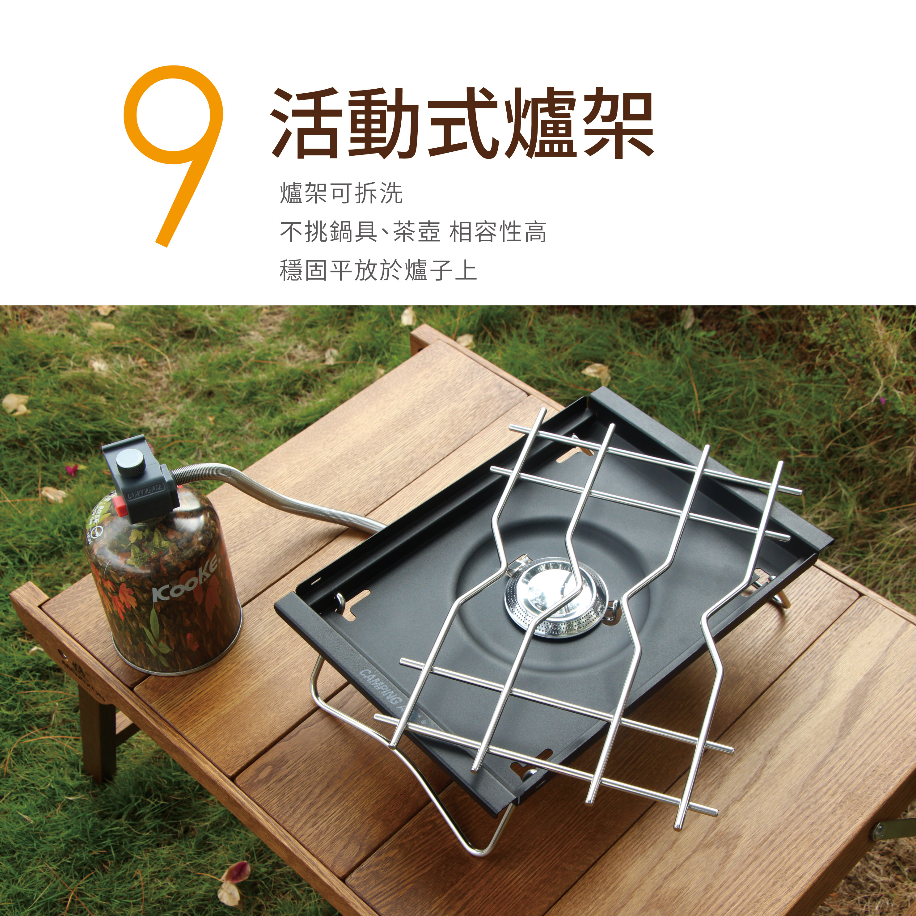 .可摺疊式爐架/縮小體積不佔位