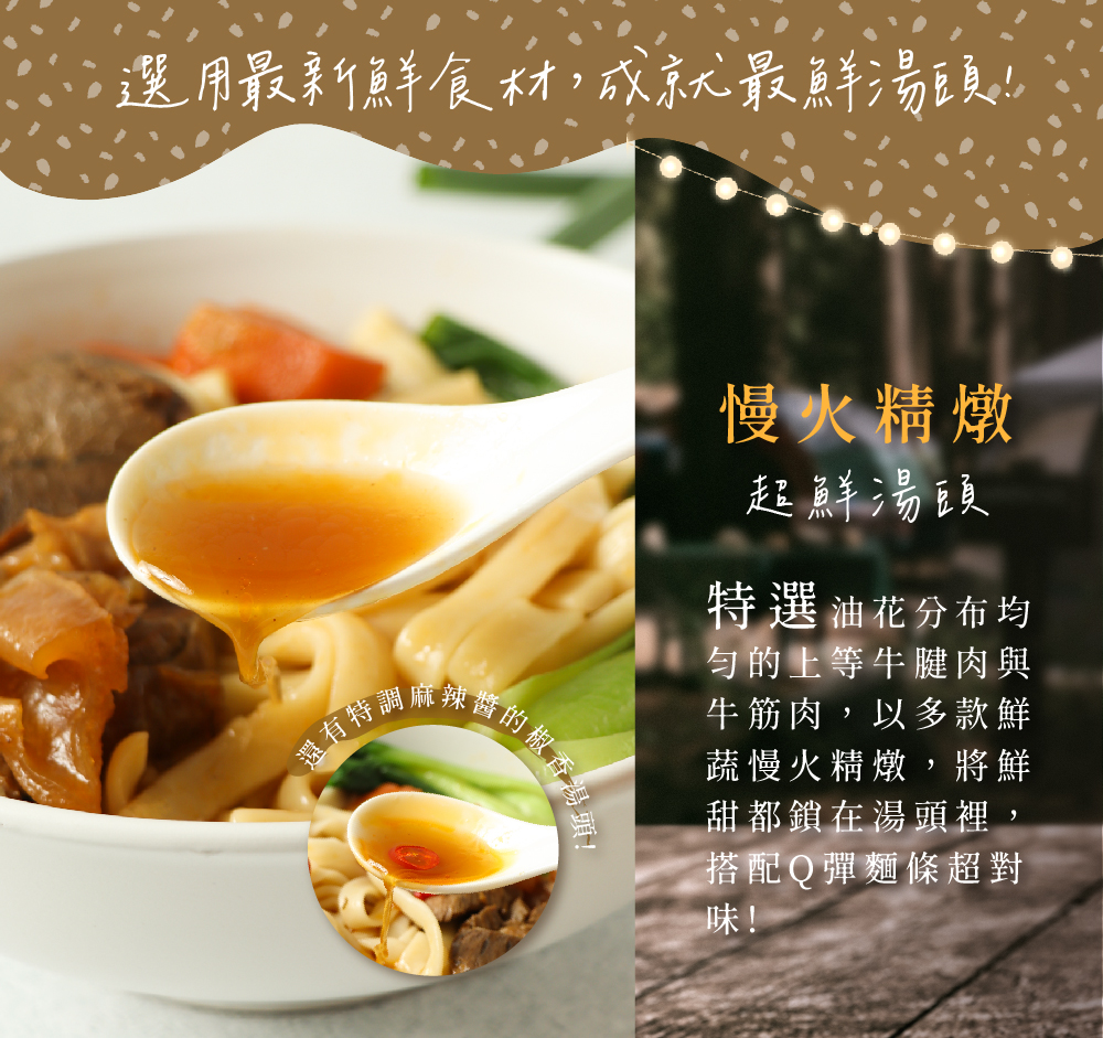 以多款鮮蔬慢火精燉,將鮮甜都鎖在湯頭裡,搭配滿滿牛肉與Q彈粗麵條超對味!
