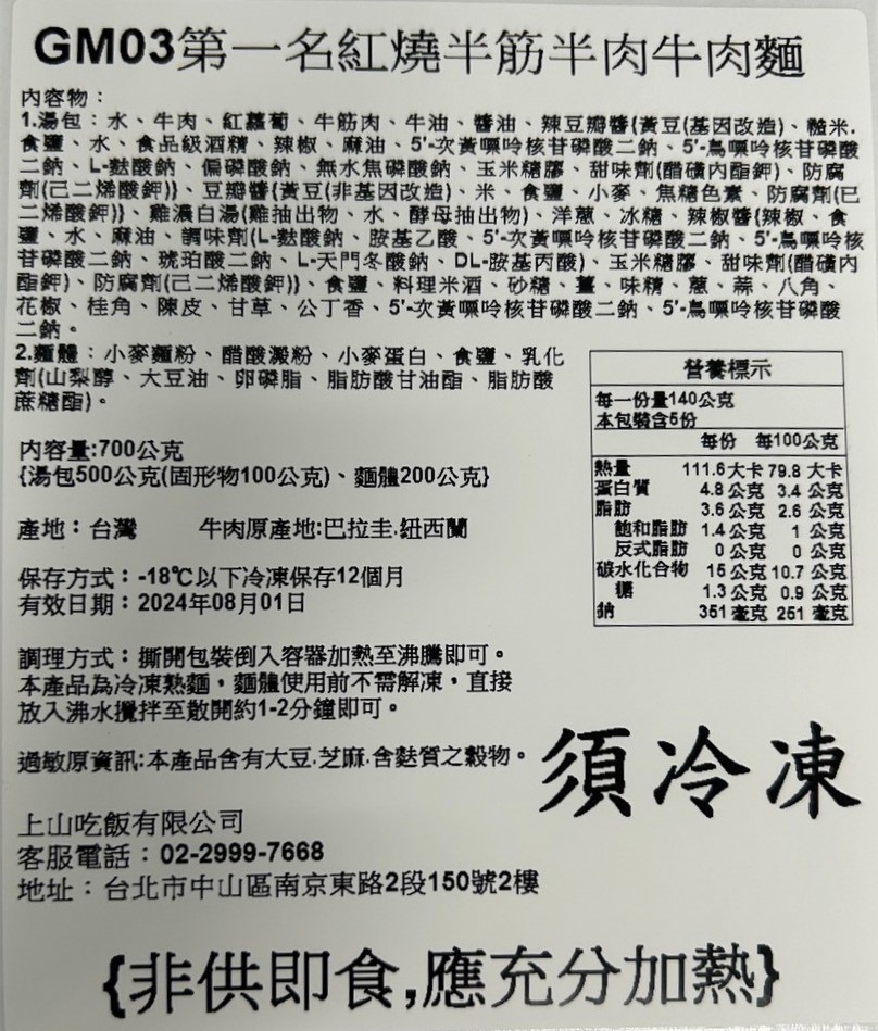 品名:第一名香辣辣 / 紅燒半筋半肉牛肉麵