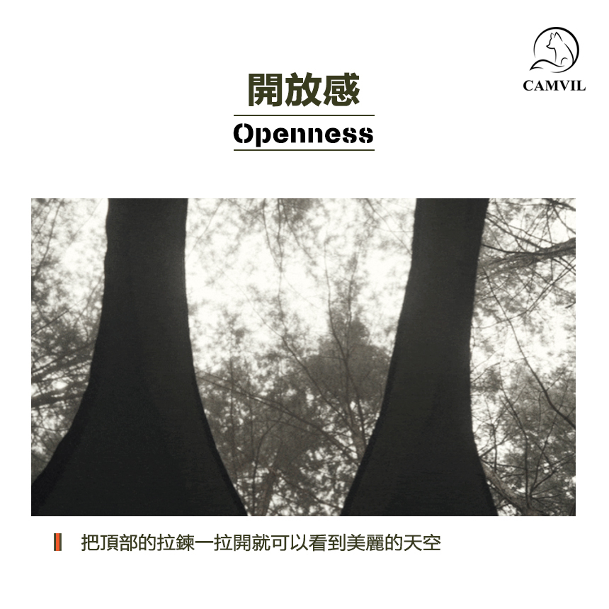 .開放感:把頂部的拉鍊拉開天窗就可以直觀天空