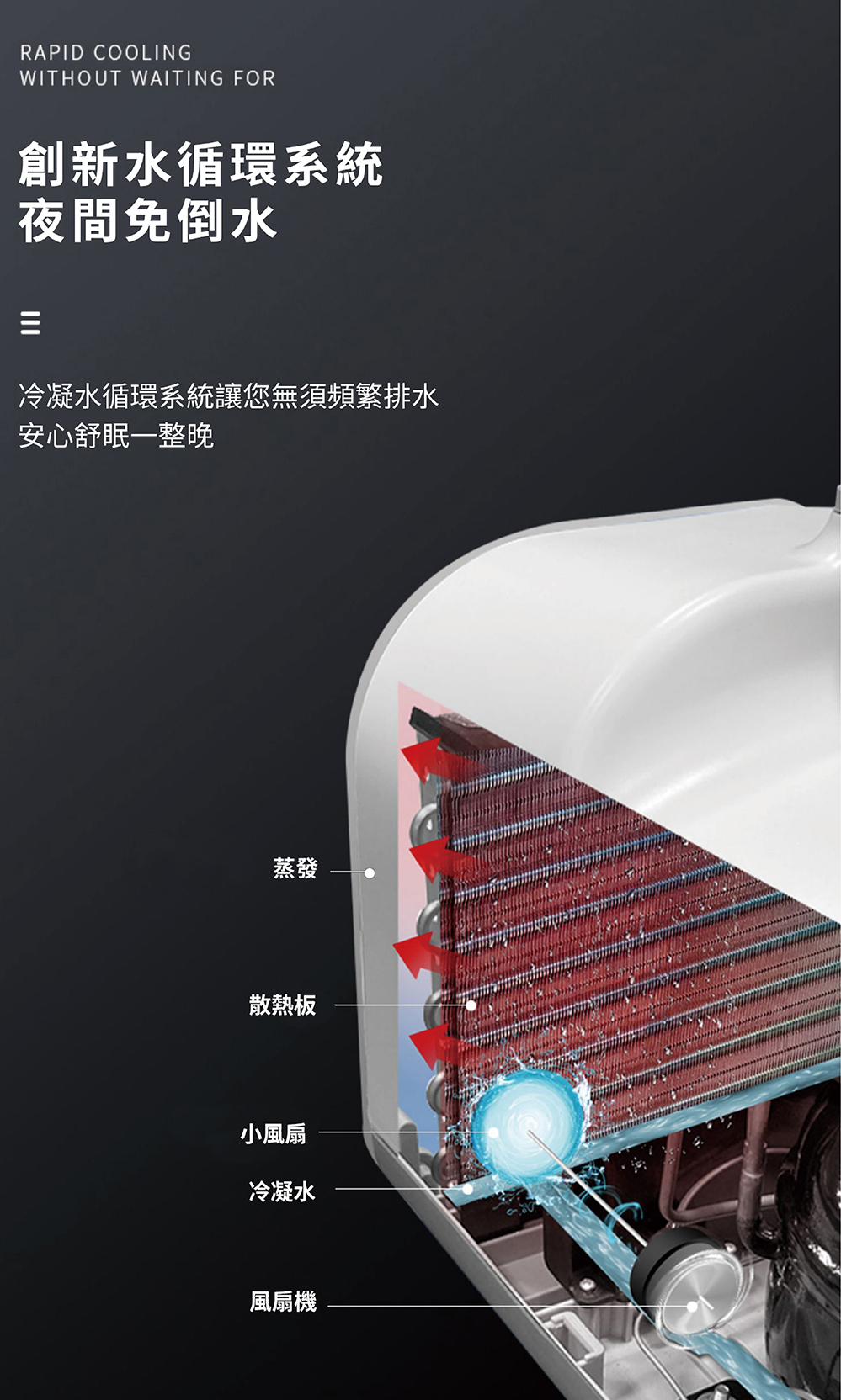 .創新水循環系統,能將大部分冷凝水透過熱蒸發