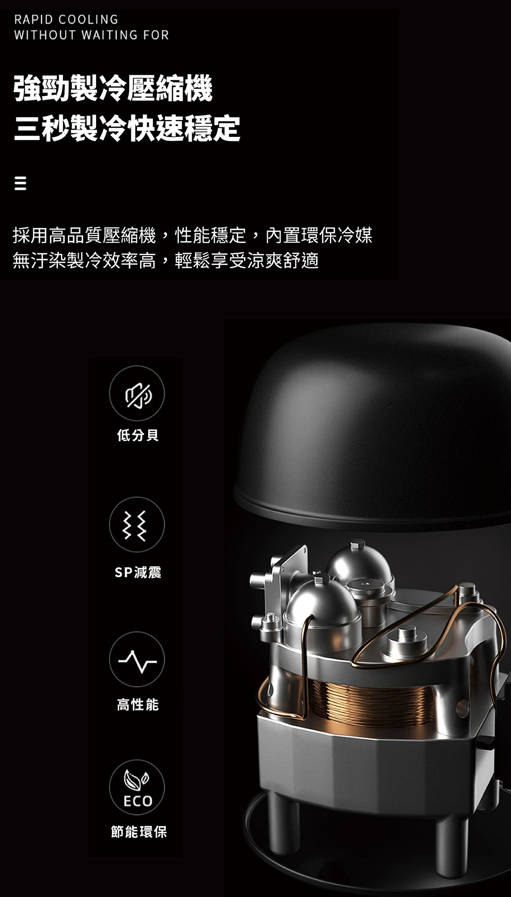 .強勁製冷壓縮機,三秒製冷,快速穩定