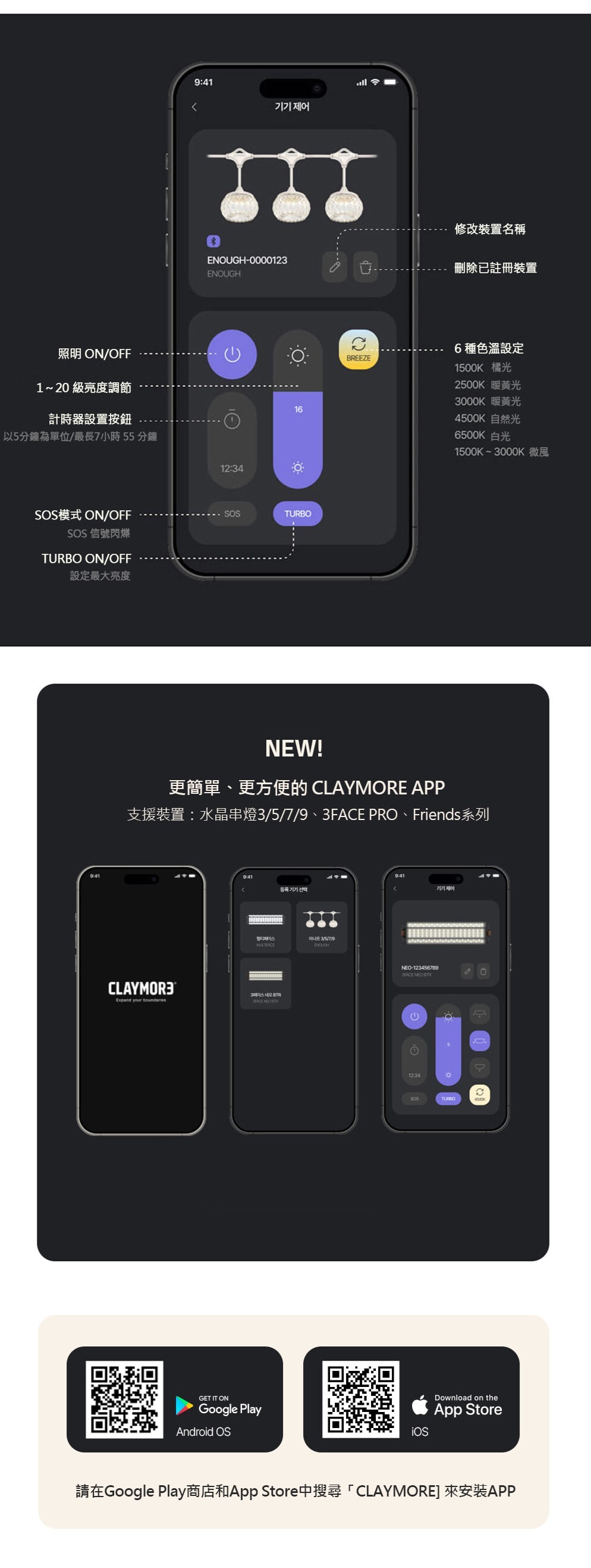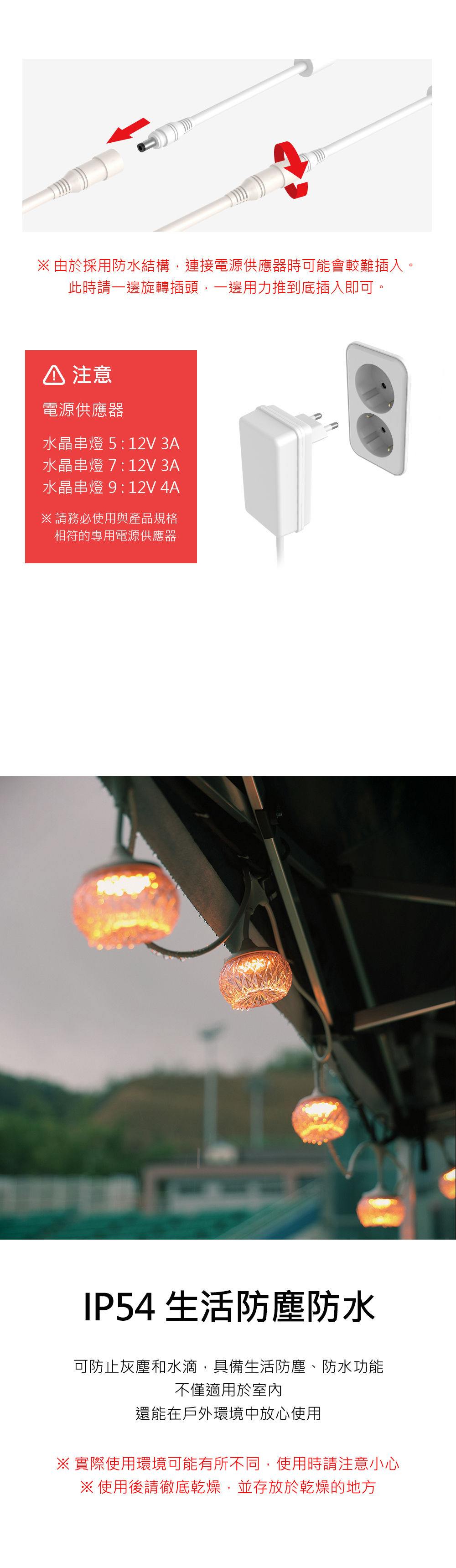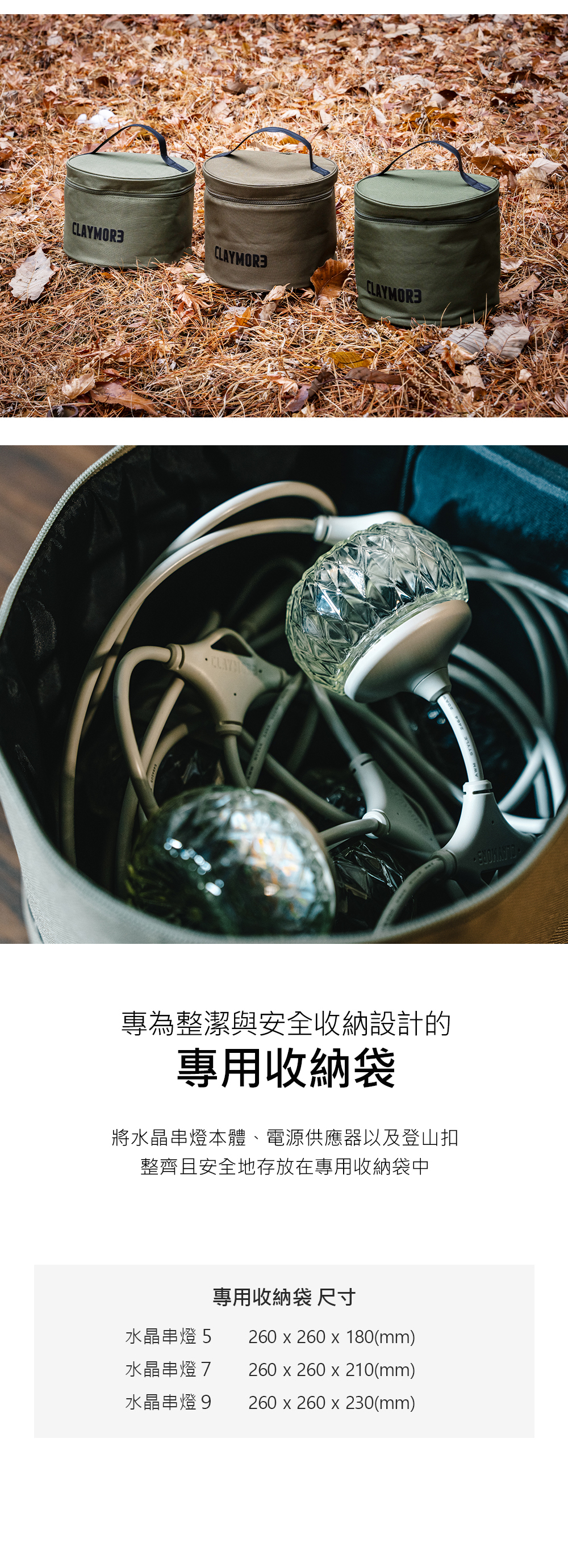 水晶串燈的光線足夠明亮,可作為主燈使用,並可根據使用者的露營風格或室內裝满選擇合適的尺寸,是一款理想的露營燈!