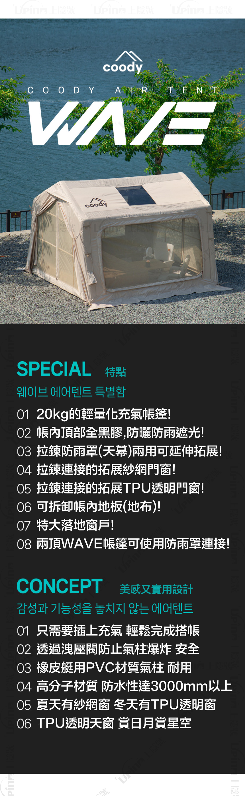 ・牛津布:帳內全黑膠/PE可拆卸式地板(拉鍊拆裝)