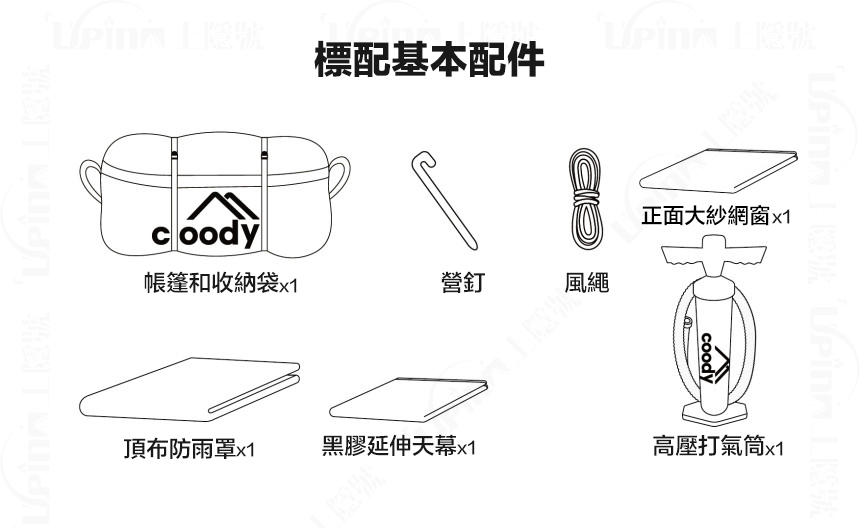 ・標配黑膠頂布(預留拉鍊可接延伸天幕)