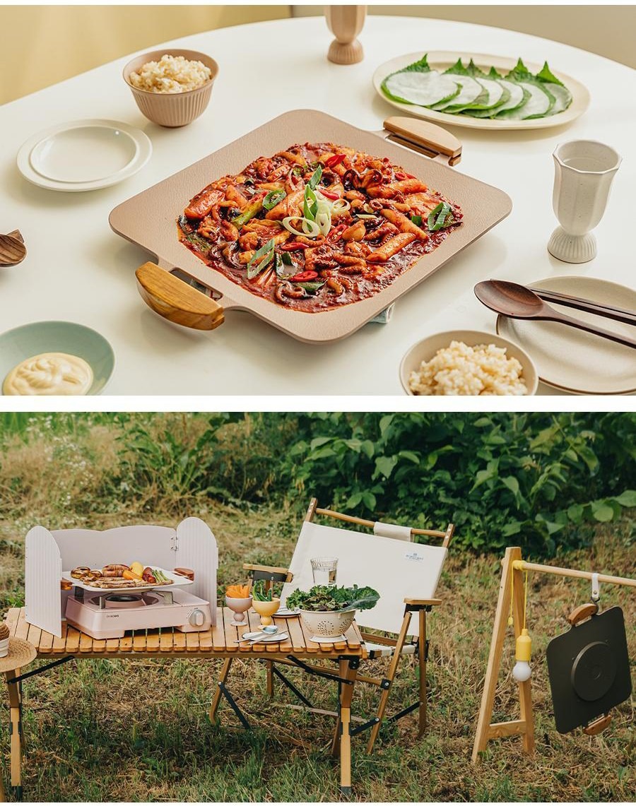 材質 : 烤盤-鋁 / 握柄- 柚木
