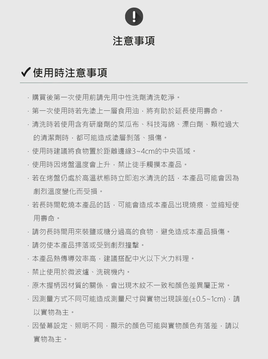 .本產品導熱速度快,建議搭配中火、小火料理,