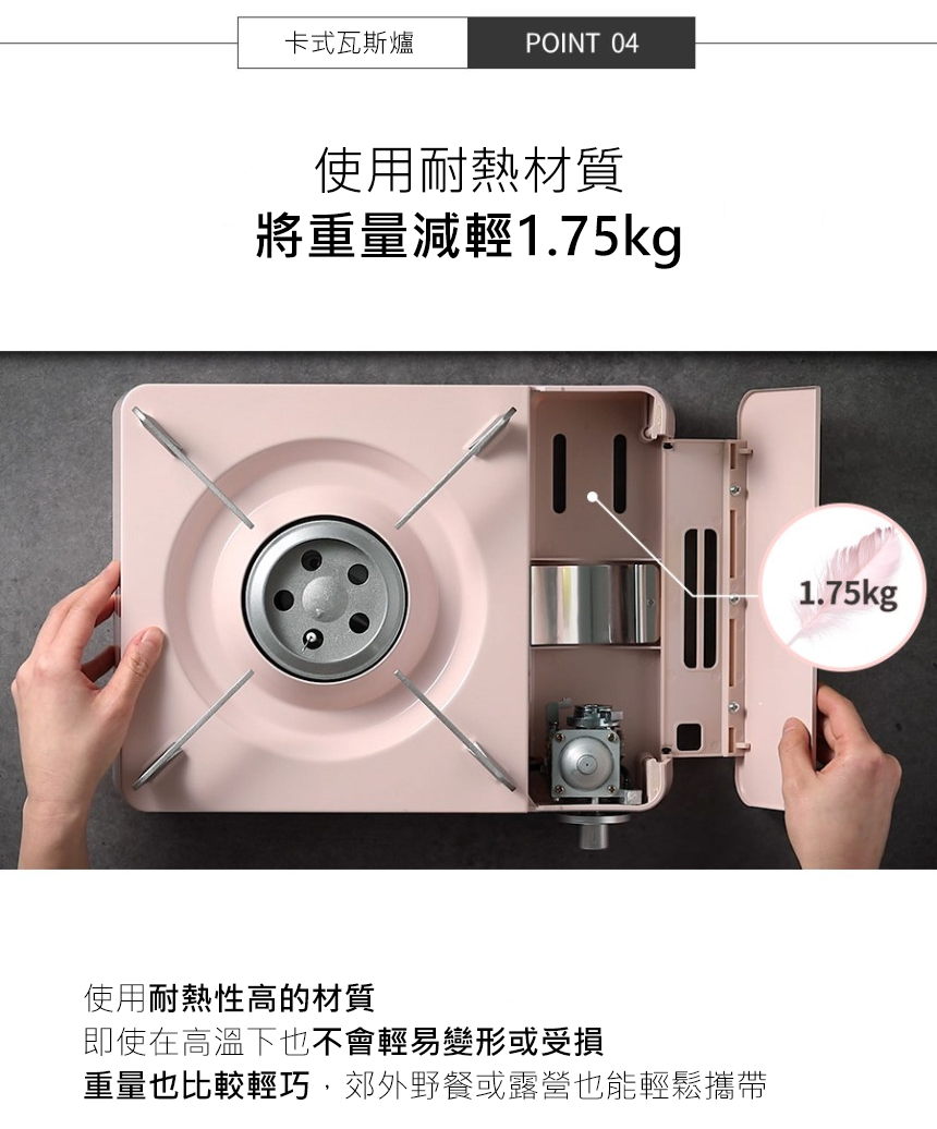 .使用耐熱材質,再減輕1.75kg