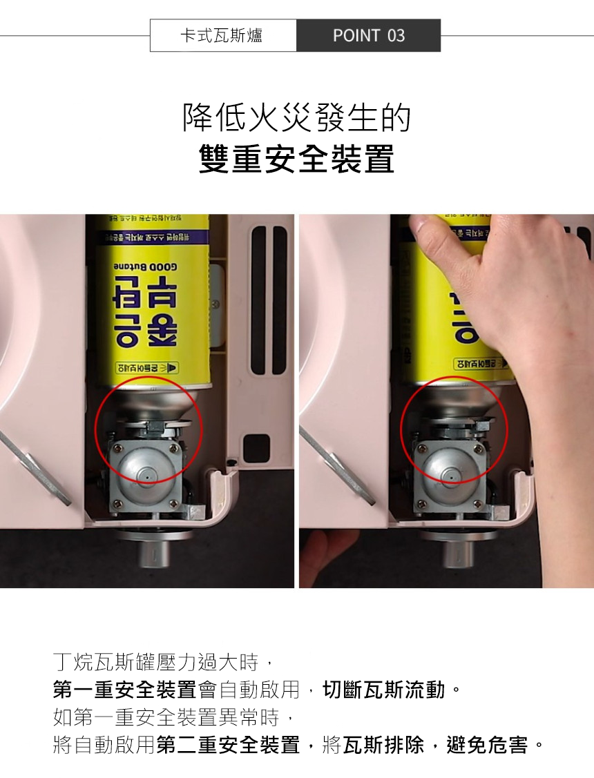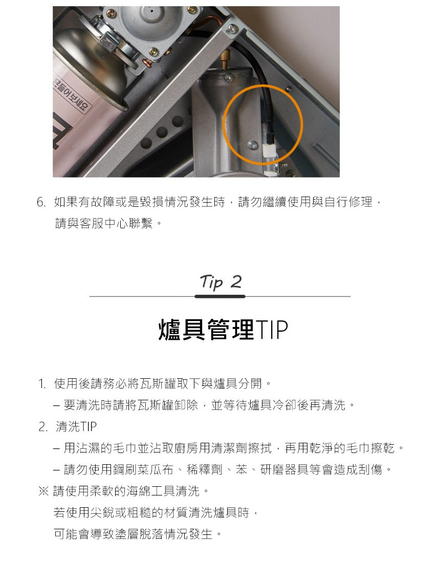 .商品使用結束後請將瓦斯罐取下並安全存放