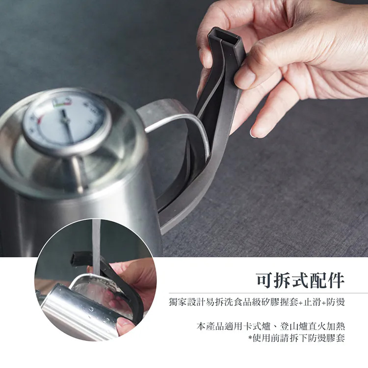 .獨家設計易拆洗食品級止滑&防燙矽膠握套