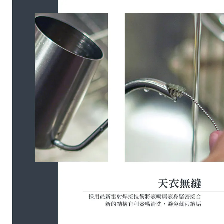 .採用最新雷射焊接技術將壺嘴與壺身緊密接合,新的結構有利壺嘴清洗,避免藏污納垢