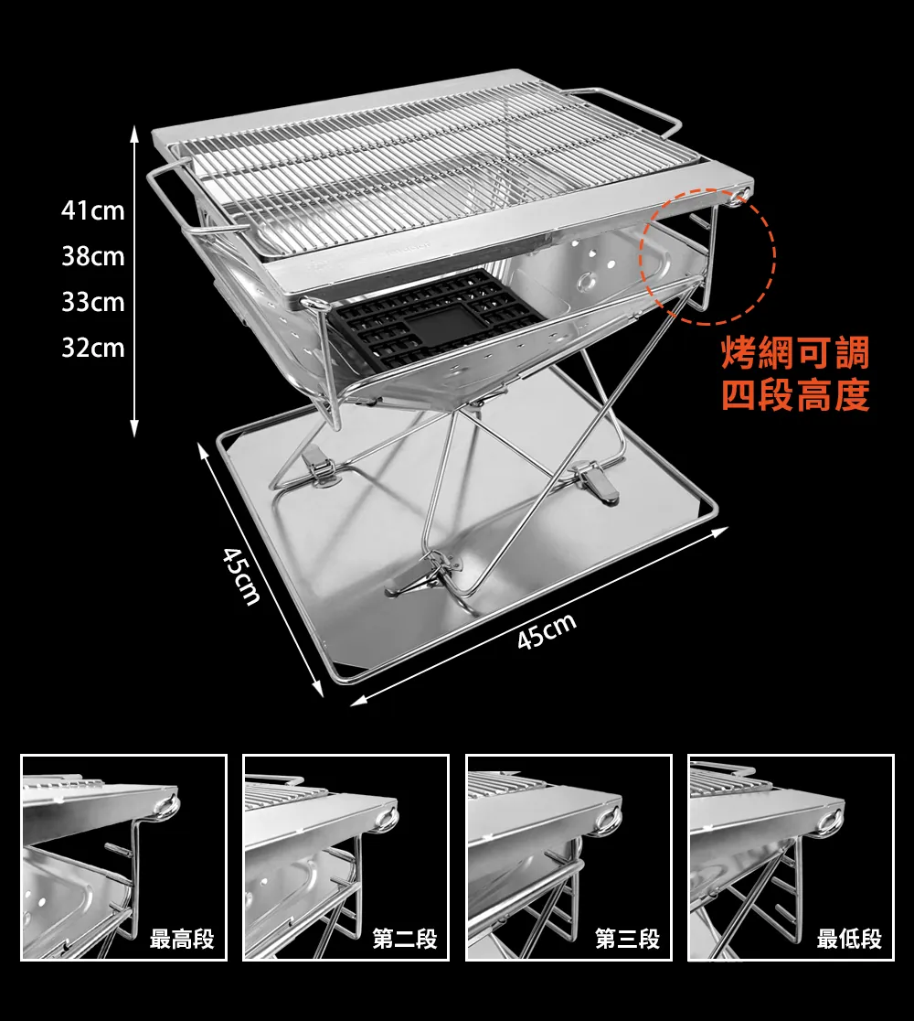 尺寸: 45 x 52(含烤網提把) x 41 cm
