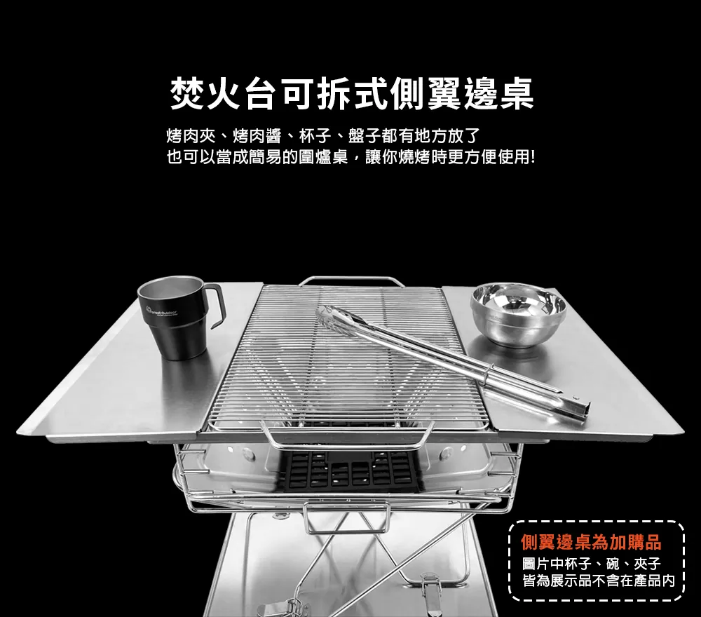 組裝後跟烤網相同平面 且也比一般焚火台邊桌更大好用