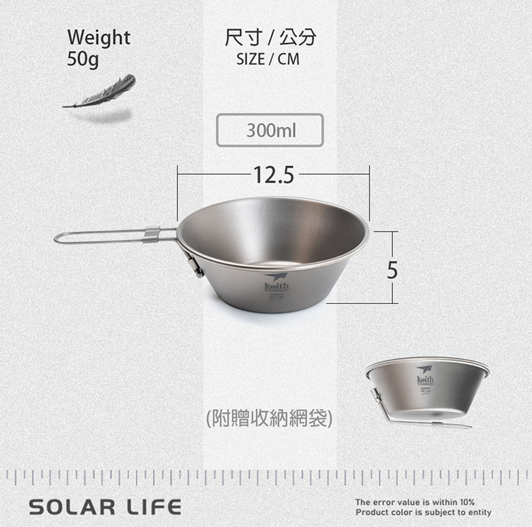 品名:Keith 鎧斯鈦折疊雪拉碗 300ml / Ti5320