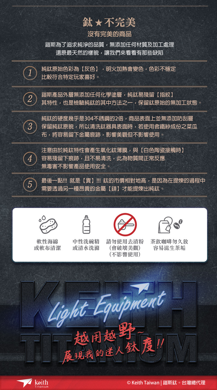 .純鈦材質打造,無塗層、無毒、無味,盛裝各種酸鹼湯飲、易染色水果食材皆可