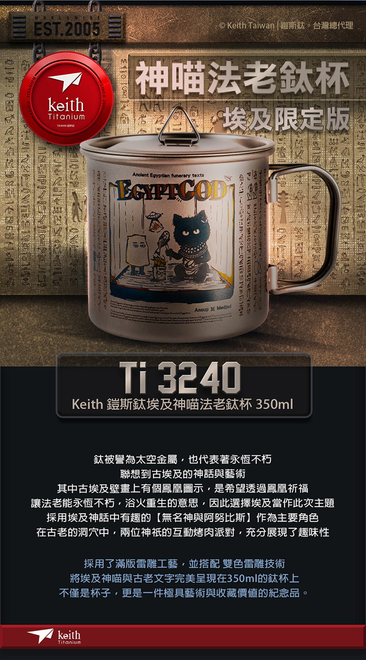 品名:Keith 鎧斯鈦埃及神喵法老鈦杯 350ml