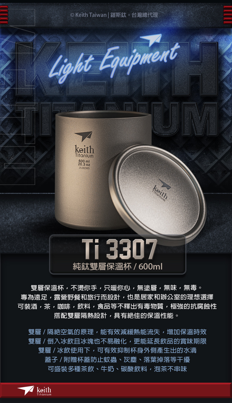.鎧斯Keith Ti3307 雙層保溫杯,不燙你手