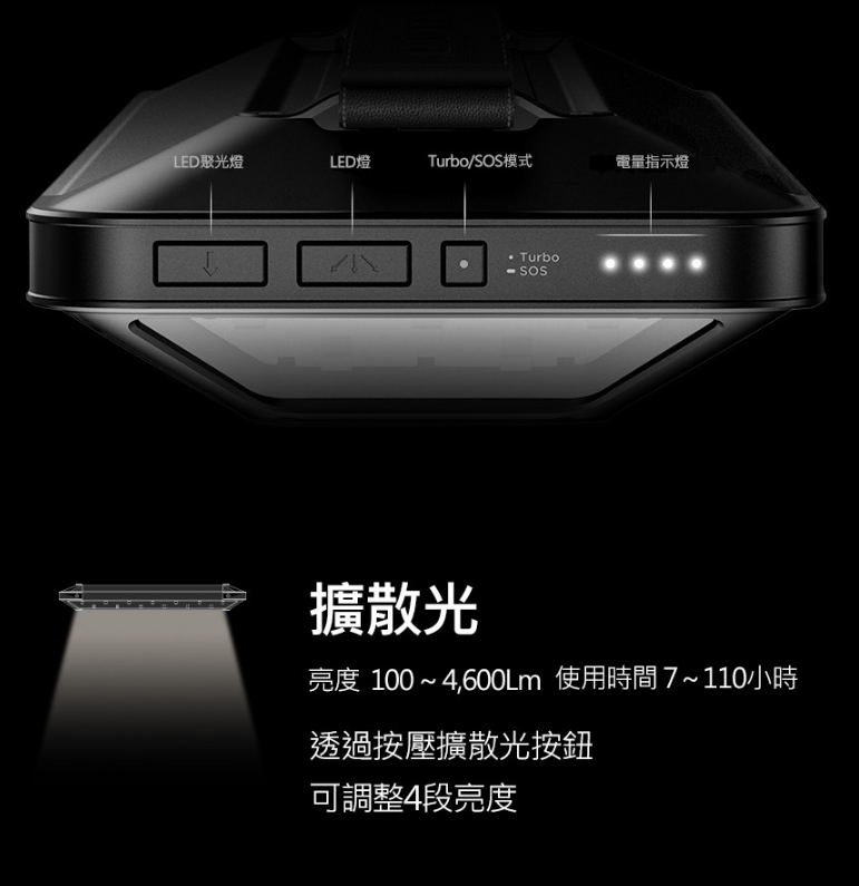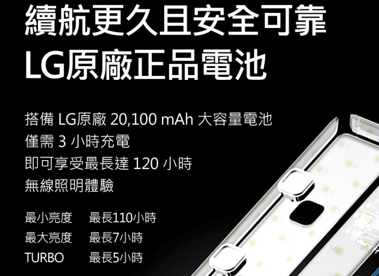 最小亮度110小時 ~ 最大亮度7小時 (Turbo 5小時)