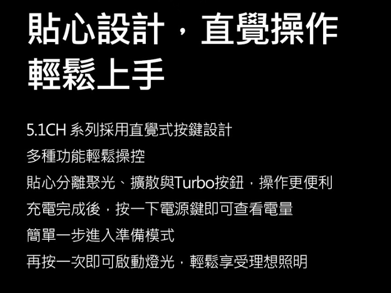 使用時數:最小亮度110小時~最大亮度7小時(Turbo5小時)