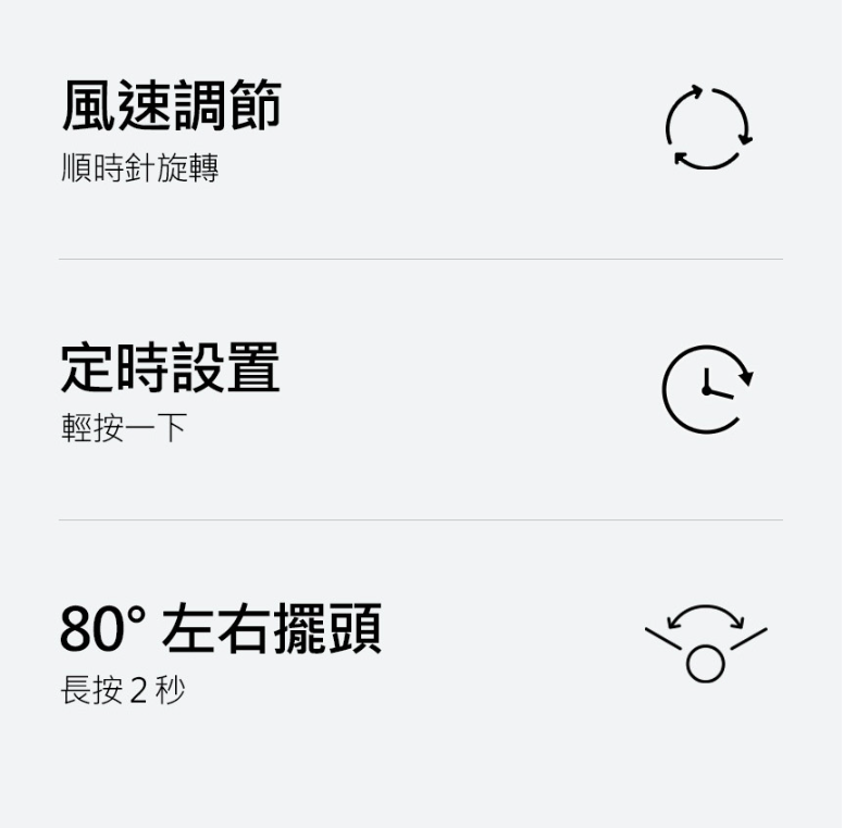 Up/down(45°), left/right(80°) 自動擺頭送風