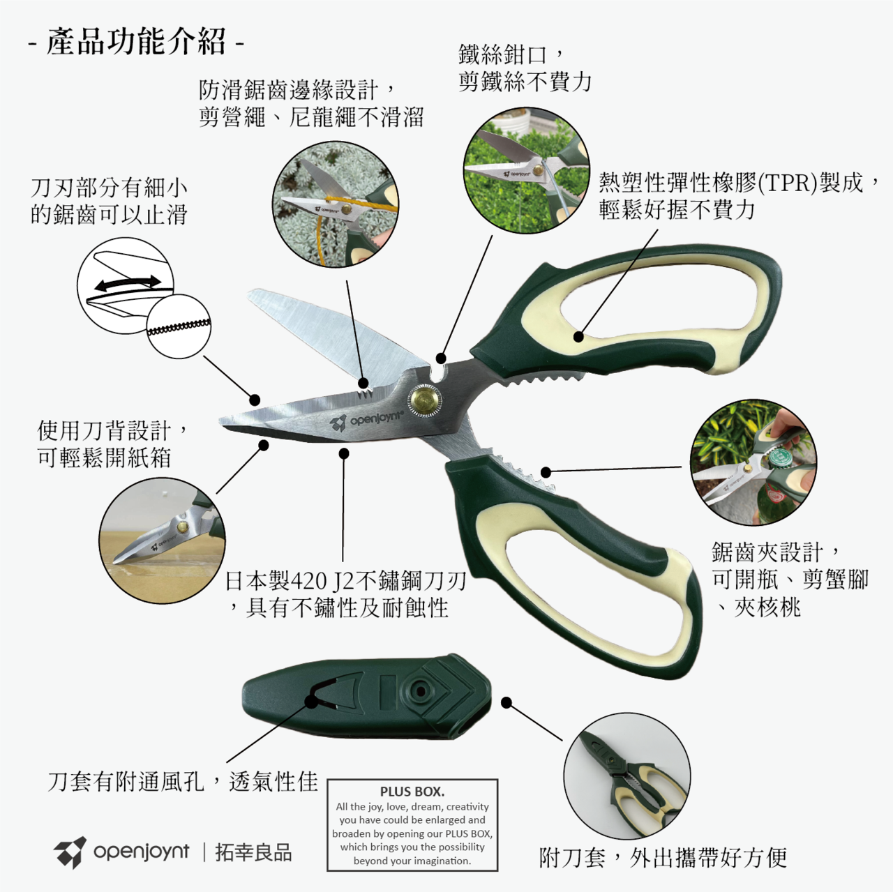 採用日本製不鏽鋼,台灣製造,媲美歐美工具精品的多功能剪。