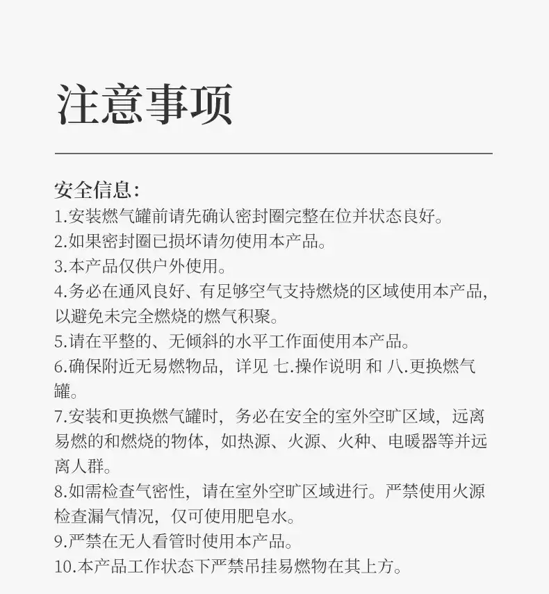 4.務必在通風良好有足夠空氣燃燒區域使用本產品,以避免燃燒未完全之危害。