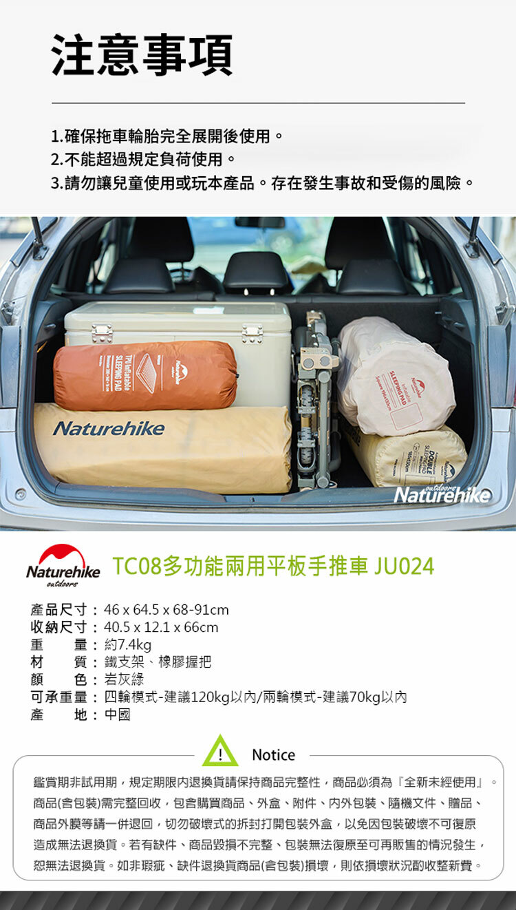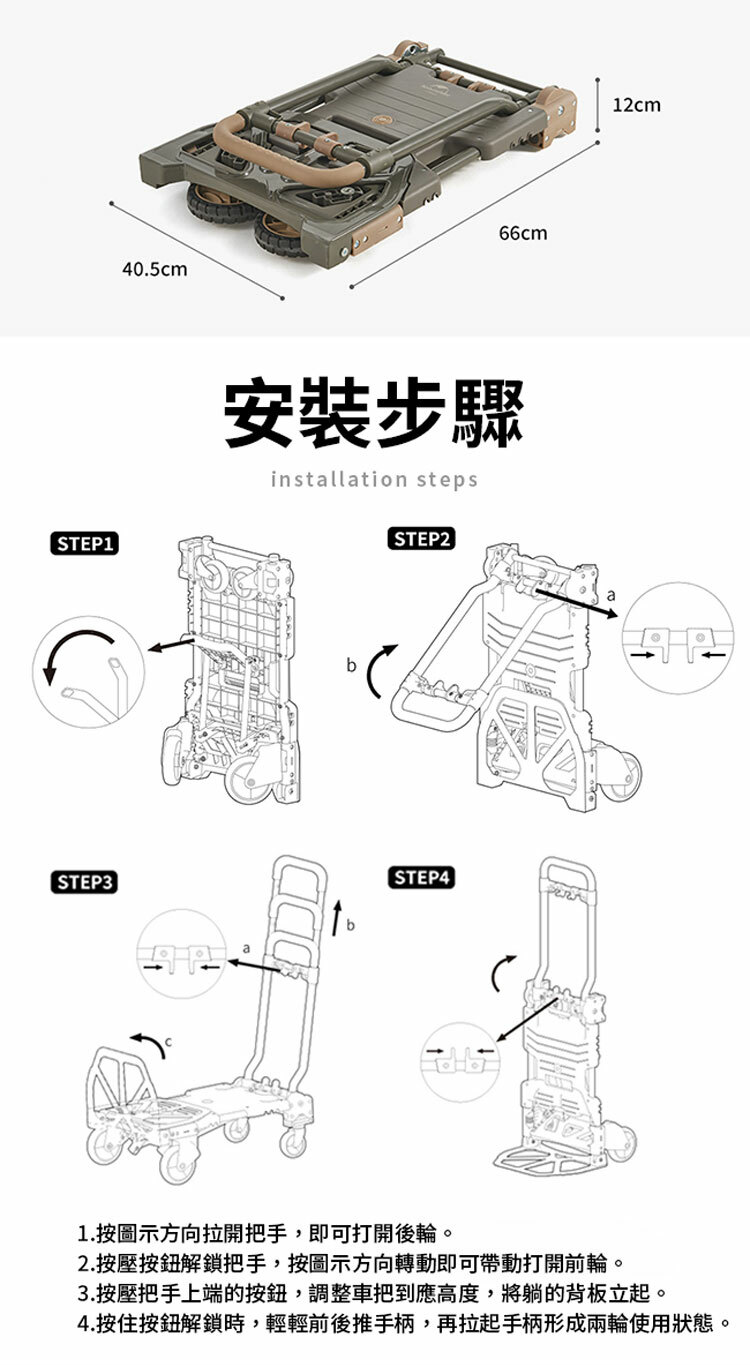 承重力:120 kg以內(四輪模式) / 70 kg椅內(兩輪模式)