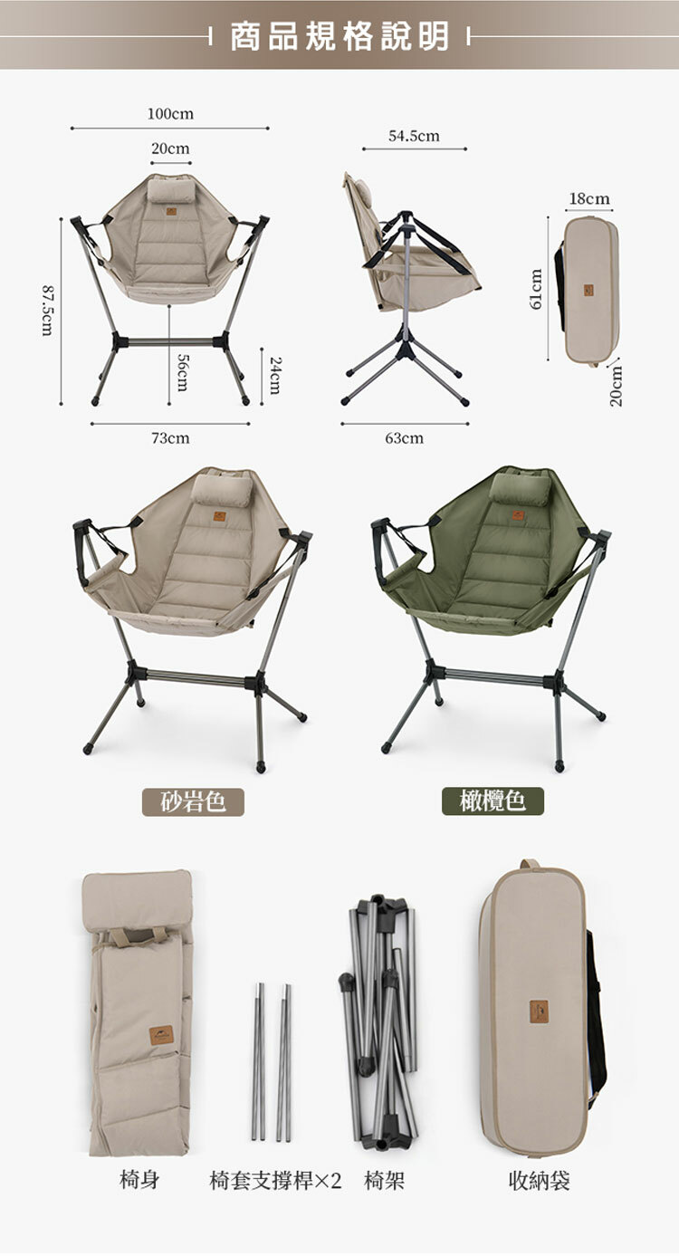 🔗產品配件:椅身 / 椅架 / 椅套支撐桿*2 / 收納袋