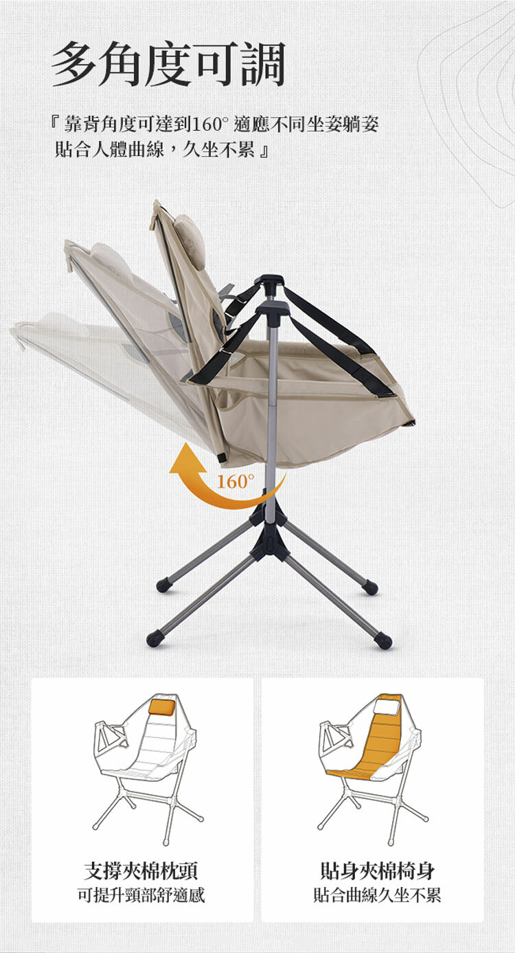 .靠背角度可達160度,貼合人體曲線