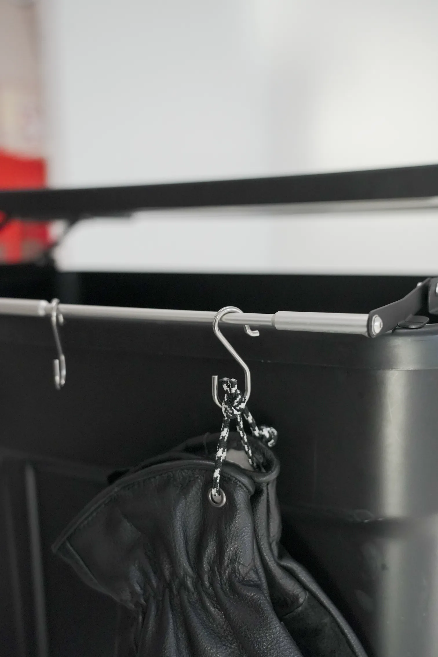 將原本無掛架功能的收納箱,搖身一變,現在也能懸掛置物了 !