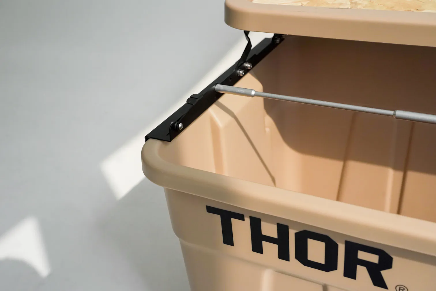 𝘍𝘙𝘌𝘌-𝘜𝘗舉升套件的配件商品"側掛架",擴充了THOR收納箱的使用功能。