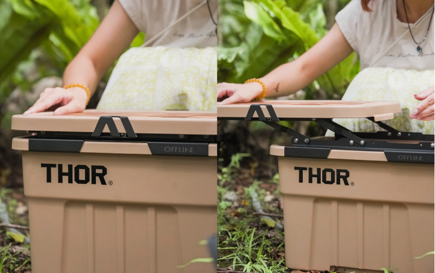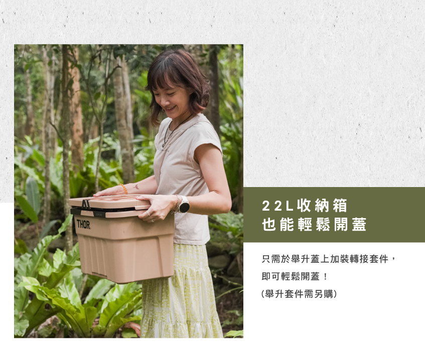 將 22L 轉接件安裝於舉升蓋上,即可輕鬆使用 22L THOR收納箱。