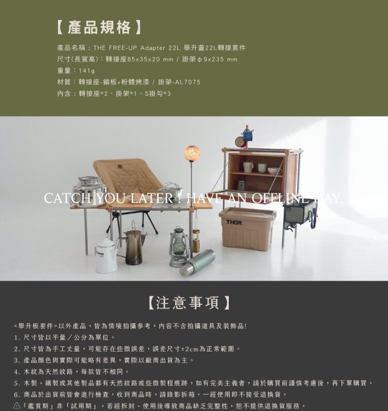 產品名稱:THE FREE-UP Adapter 22L 舉升蓋22L轉接套件