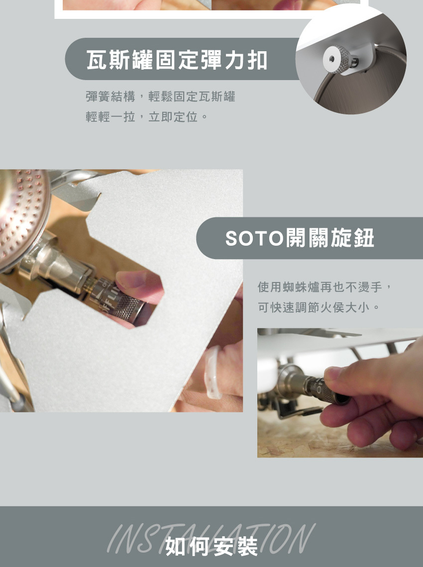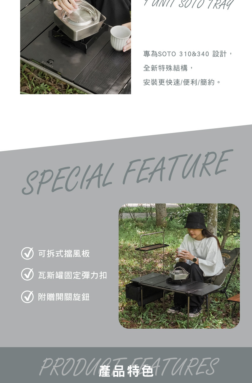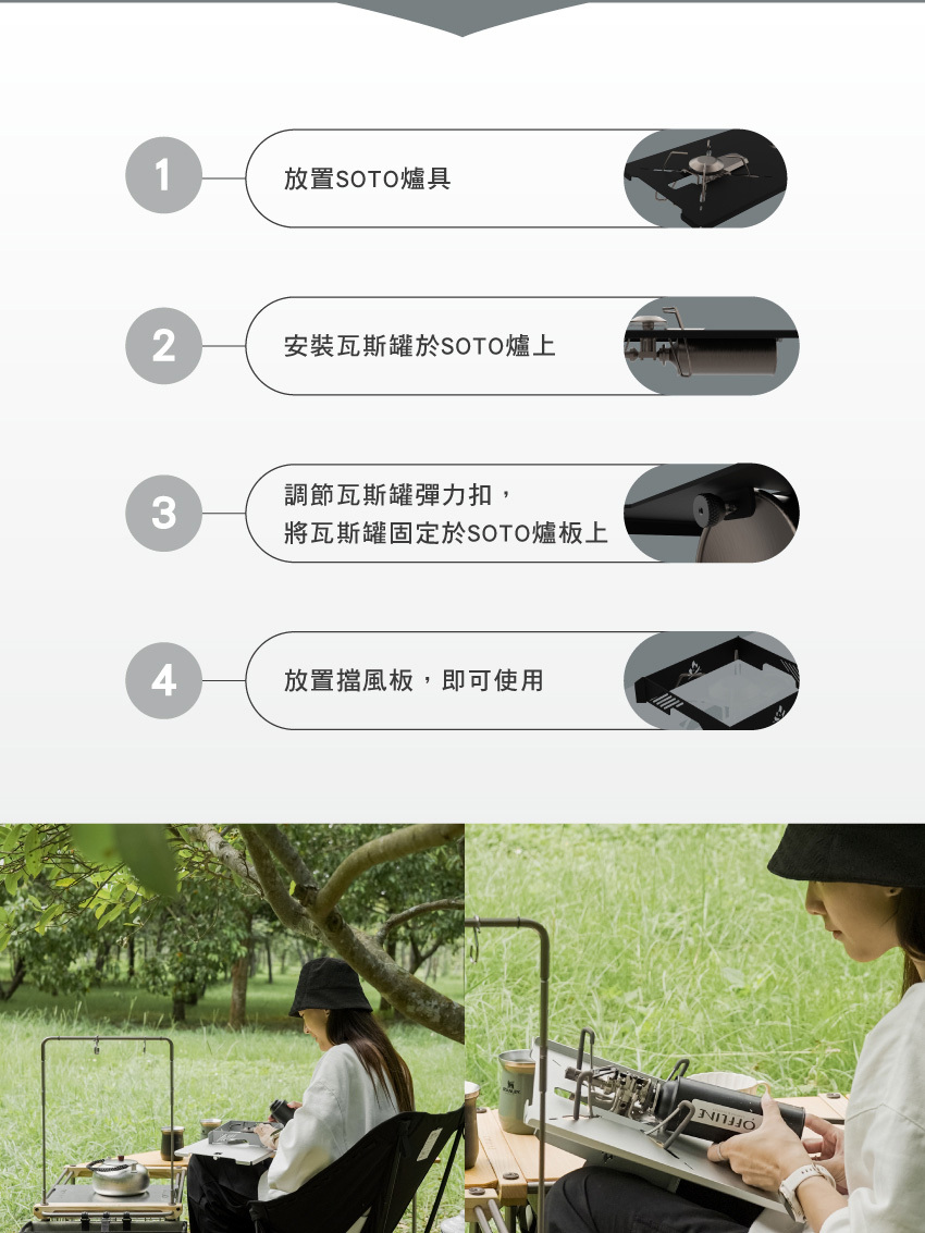 *本產品不含SOTO爐具,僅含桌板、擋風板、開關旋鈕