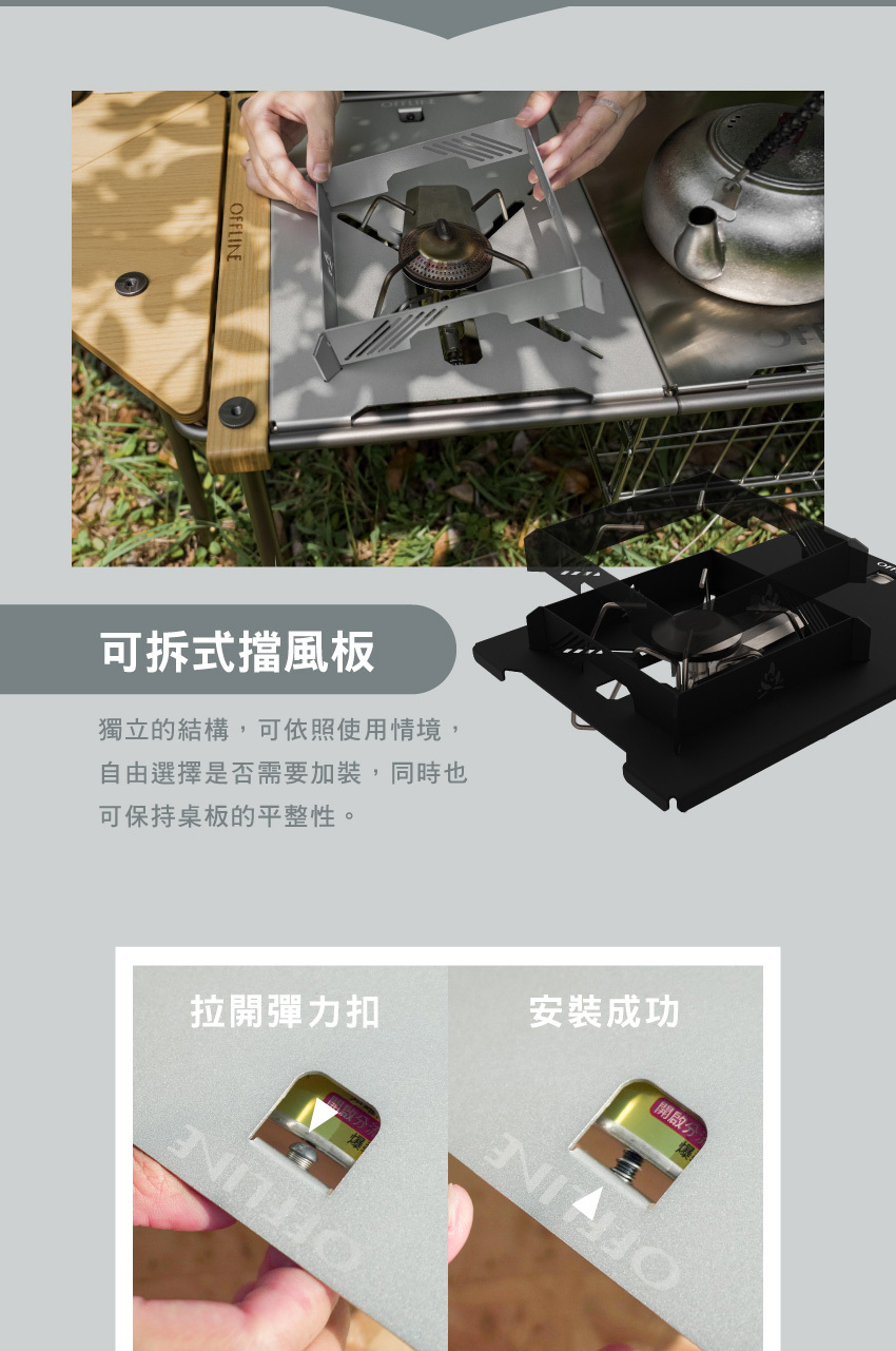 材質 : 鋁合金SOTO桌板 / 粉體烤漆、擋風板 / 鋼板